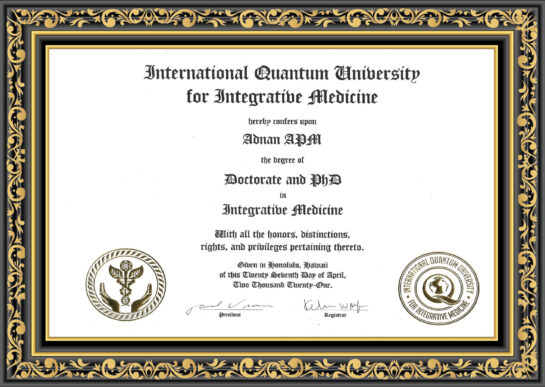 Dr. Adnan has been a great enthusiast of Alternative and Complementary Medicine, Mind-body Medicine, and Holistic Healing modalities. His dream has been to gain training in a variety of alternative and complementary medicines. He advanced his studies by enrolling for a Doctorate Degree in Integrative and Natural Medicine. Adnan pursued his Ph.D. education in the prestigious and world-class university of the International Quantum University of Integrative Medicine (IQUIM), USA. In this scholarly endeavor, he completed courses such as Quantum Homeopathy & Toxicology, New Quantum Medicine, Aromatherapy, Auriculotherapy, Hypnotherapy, NLP, Quantum Healthcare Management, Bio-feedback, Quantum Hematology, Heart Rate Variability, Quantum Hormonology, Taoist Medicine, and Neuroplasticity. After gaining scholarly knowledge in these courses, Adnan became a pioneer of unconventional medicine and now he has started writing a book on Quantum Medicine. He had years of experience with each field of the degree, as well as witnessed people recover with by integrative medicine.
