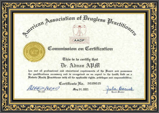 Dr. Adnan APM is an icon and advocate for holistic healing with exceptional leadership, entrepreneurial astuteness, enthusiasm, determination, creativity, and inspiration and a Certified Holistic Health Practitioner by the AADP (American Association of Drugless Practitioners’ Certification and Accreditation Board)